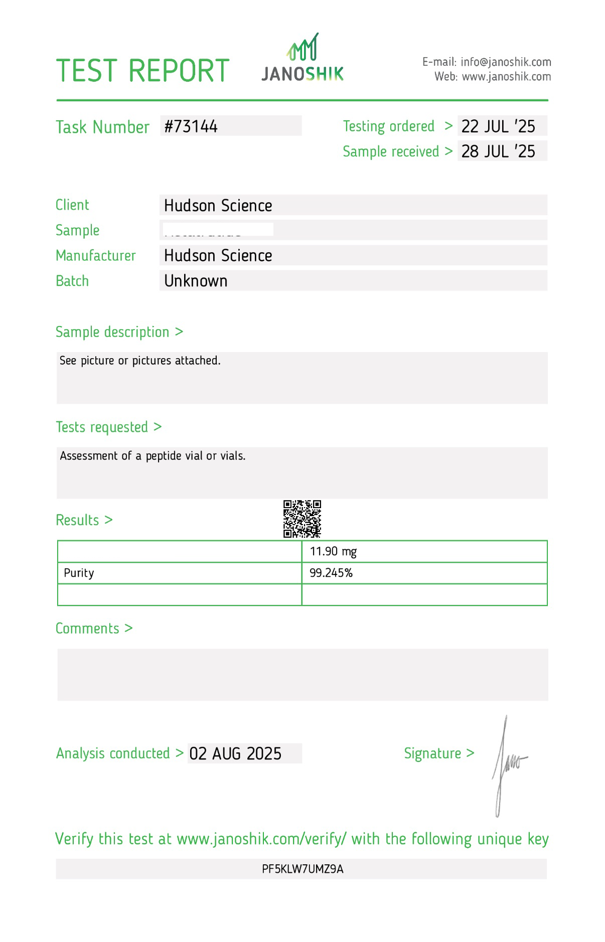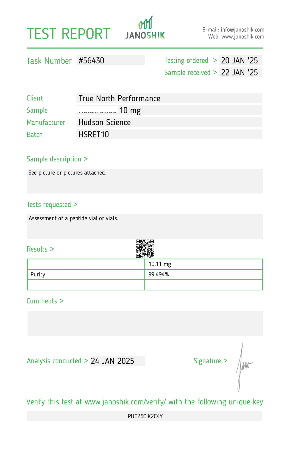 ![Melanotan 2 10mg [Skin tanning + libido boost] – Hudson Science (Certificate of Analysis, Second Image)](https://truenorthperformance.to/wp-content/uploads/2024/11/img_1384-300x300.png)